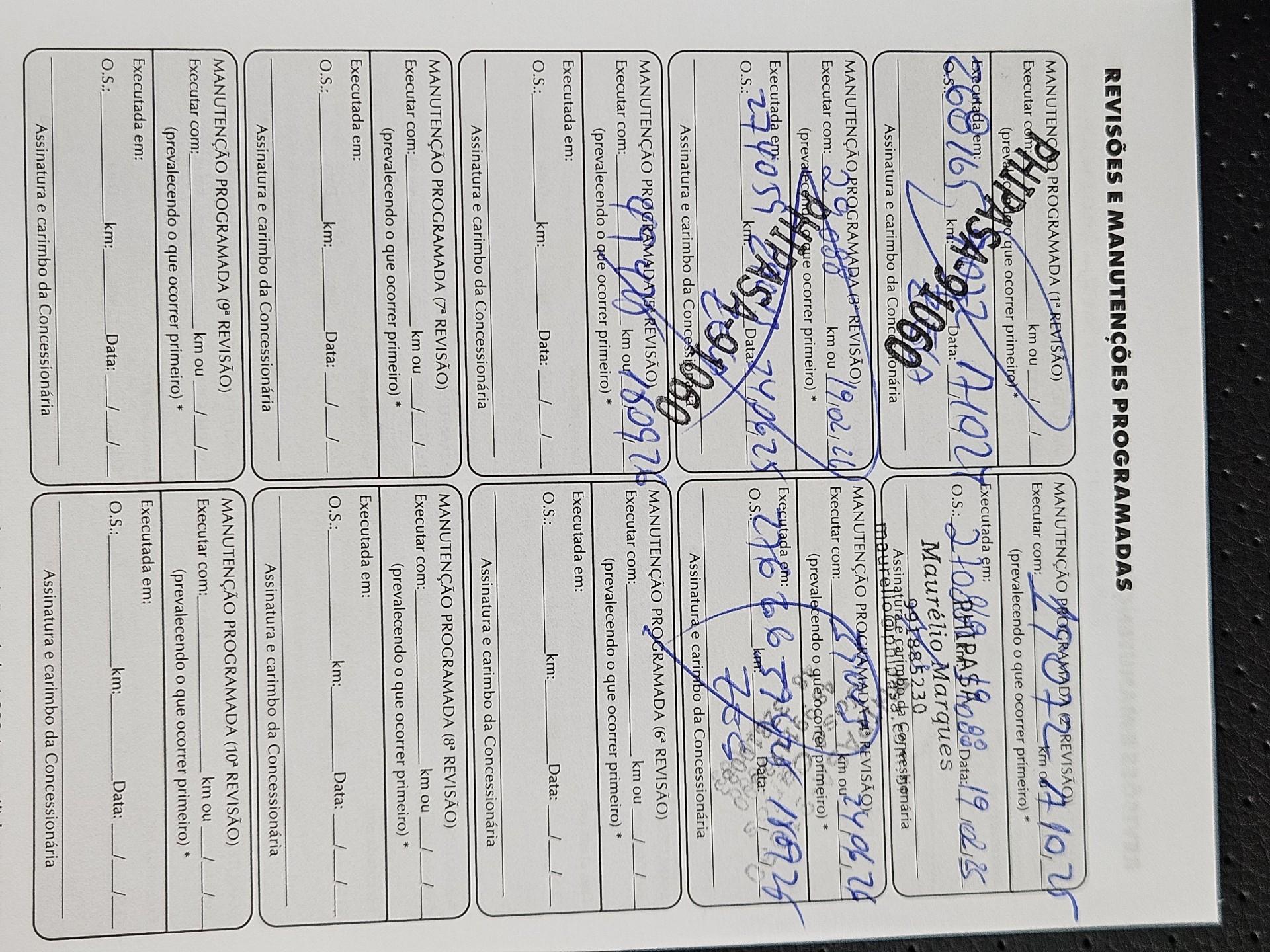 Revisões feitas em concessionária